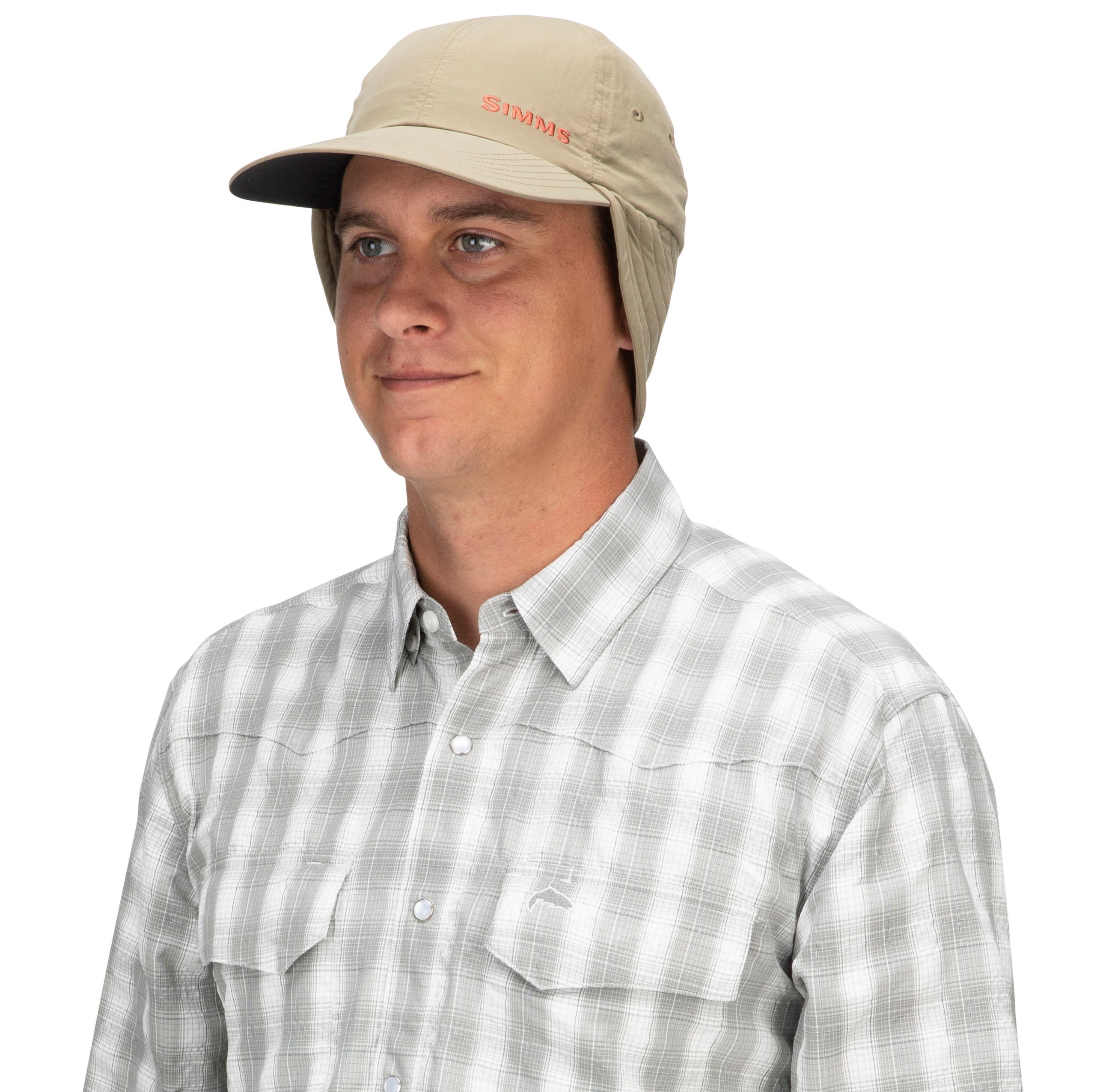 - Fold-down tapered ear flaps for extended sun protection