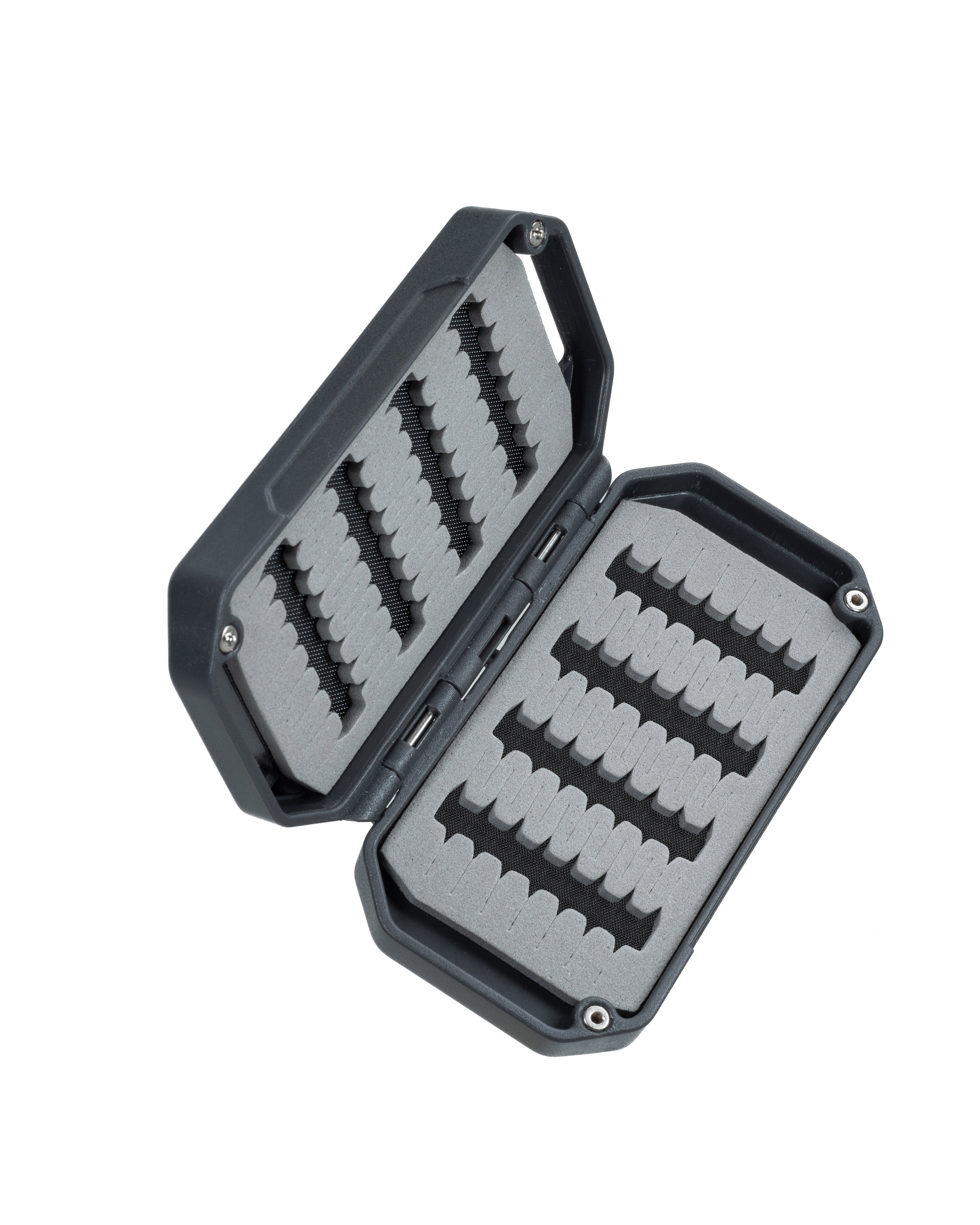 Interior FlyTrap™ slit foam holds dozens of flies; exterior magnetic pad for quick staging or drying.